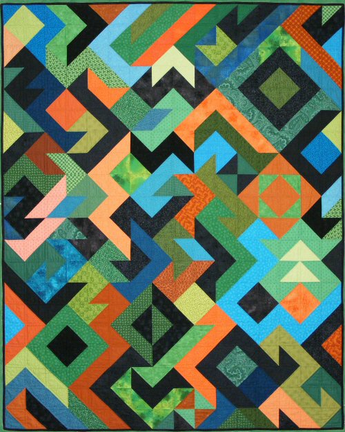 Quilt Size: 64" x 80" Alternative sizes included: 32" x 40"; 48" x 60"; 80" x 100" Pick your favourite four colours and black to make this WOW! quilt. As complicated as this quilt looks, you will be pleased to know... It's easy! I've also included the cutting information you will need to make this Triangle Party 2 quilt in three alternative sizes. To see members versions of this pattern, click here.